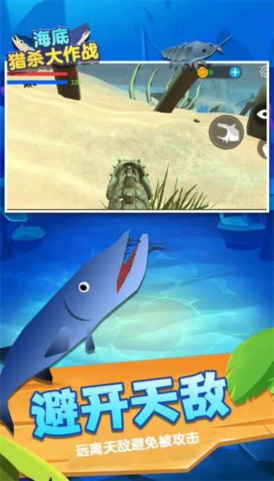 海底猎杀大作战下载安装是一款海底世界生存大作战游戏,在这里化身一条小鱼在海底冒险,我们要不断去寻找各种各样的食物来进行升级,快速进化,提升能力,开启多样化的生存对战,展现自身的操作,赢得比赛的冠军,成为海底的霸主。