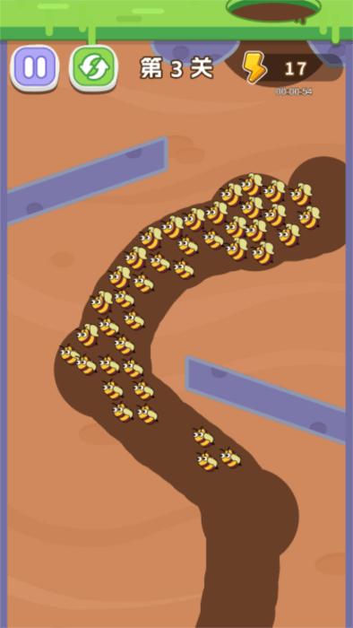 1、观察关卡布局,分析蜜蜂飞行路线与障碍物位置关系。