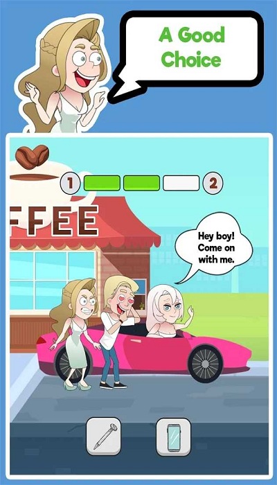 3、看到左右两个图标,点绿色勾手势帮他们和好,或者点蓝色杯子给他们买咖啡和解。